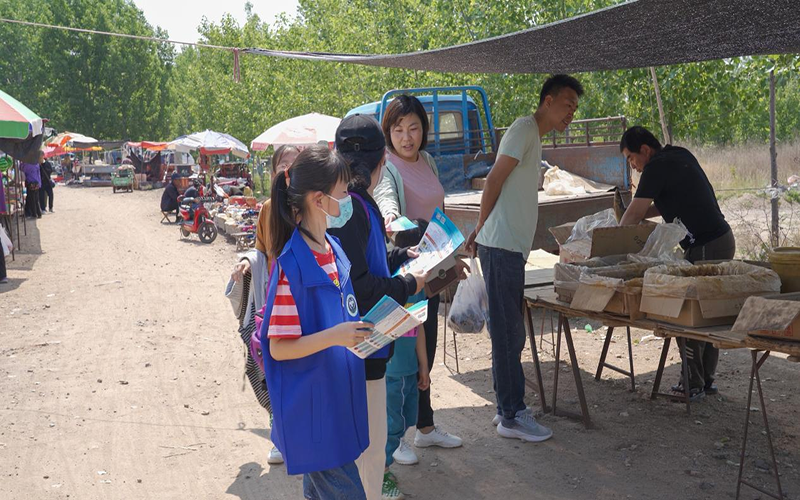 为进一步贯彻落实《山东省禁毒条例》中关于做好全民禁毒的相关要求,扎实开展禁毒“六进”“新六进”宣传教育活动,助力我市新时代文明实践建设,5月21日,潍坊市禁毒协会以集市人流汇集为契机,联合安丘市禁毒办走进大盛镇集市开展了以“健康人生,绿色无毒”为主题的禁毒宣传志愿活动。