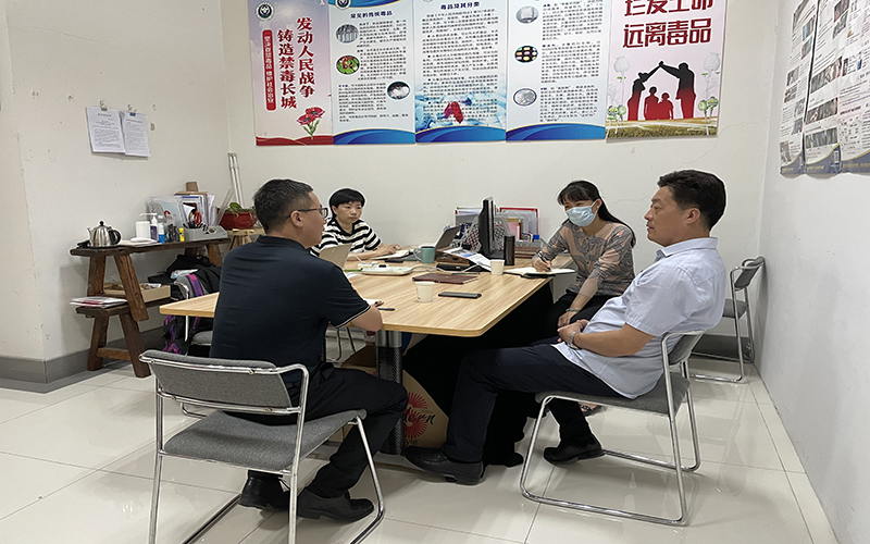 5月24日,在全民禁毒宣传月到来之际,为进一步贯彻落实习近平总书记关于“坚持厉行禁毒方针,打好禁毒人民战争”的重要指示精神,强化各区职能部门联动,共同维护平安稳定的社会秩序,潍坊市坊子区禁毒办副主任、坊子公安分局禁毒大队大队长刘凤军,坊子公安分局禁毒大队秘书室主任李伟一行来到潍坊市禁毒协会,双方就如何更好地开展禁毒宣传活动,加强禁毒社会化综合治理和全民预防教育,提升禁毒宣传工作实效展开了深度座谈交流。