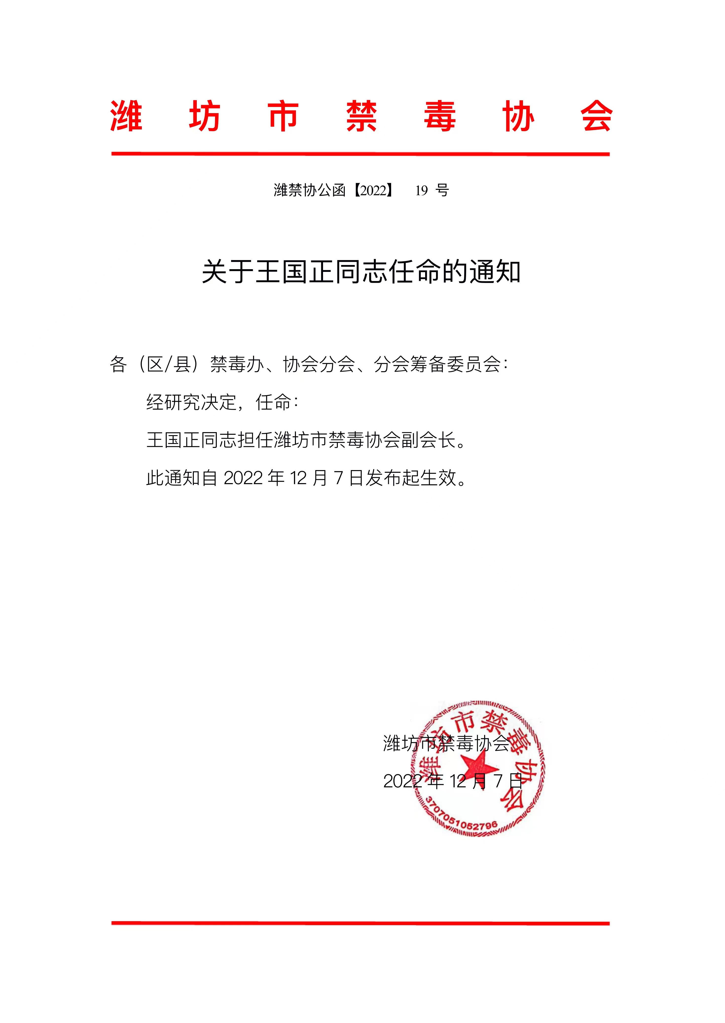 关于王国正同志任命的通知
